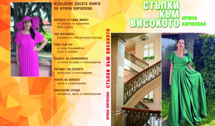 „Стъпки към високото“ е осмата книга на Ирина, която тя представи на изпълнилите залата хора, дошли не само заради творчеството, но и заради самата нея. Елегантна, спокойна, уверена, знаеща, готова за предизвикателства на публиката, мила и добра с хората – такава я видяха жителите и гостите на града.