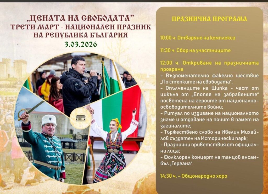 Покана: Да празнуваме 3-ти март 2026 в „Исторически парк“